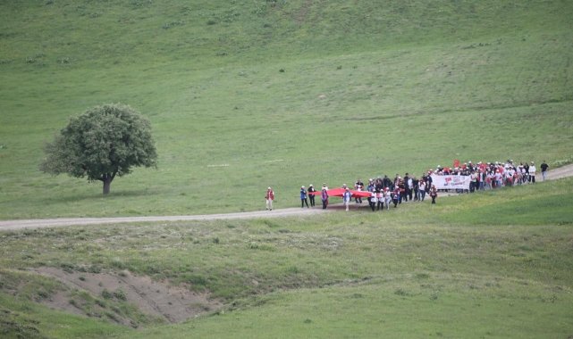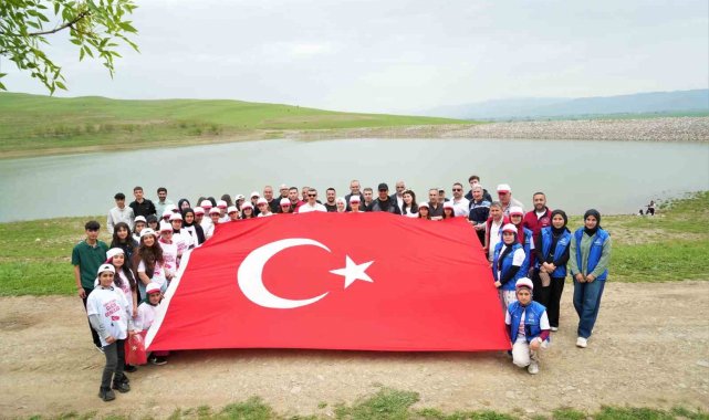 Muş'ta gençler Türk bayrağıyla doğada buluştu