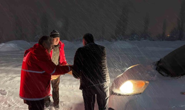Kızılay ekipleri, kar ve tipi nedeniyle ilerlemekte güçlük çeken bazı araçları iterek sürücülere yardımcı olurken, aynı zamanda mahsur kalan vatandaşlara kek ve meyve suyu dağıtarak beslenme ihtiyaçlarını karşıladı.