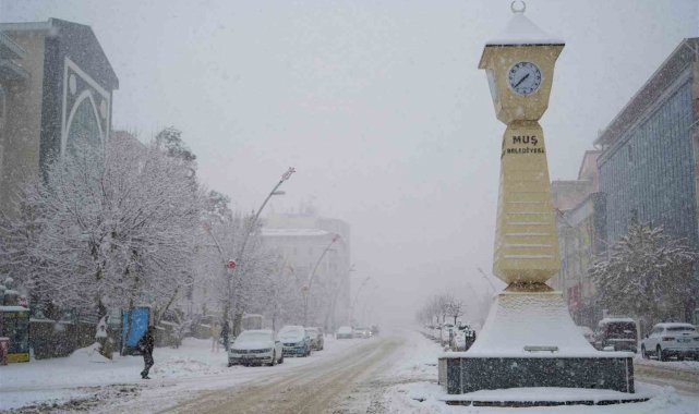 Muş'ta dün gece saatlerinde başlayan yoğun kar yağışı kenti beyaza bürürken, kırsal kesimde ise hayatı olumsuz etkiledi.