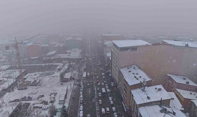 Muş'ta öğle saatlerinde başlayan yoğun kar yağışı kenti beyaza bürüdü.