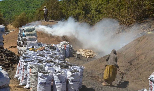 5 ay çalışarak mangal kömürü ürettiklerini söyleyen Harun Özdemir, "Ben buraya 3-4 aydır gelmişim. Günde 5-6 kilometre uzaktan odunları buraya taşıyoruz. Şu an kömürleri çıkarmaya devam ediyoruz. Bir kısmını çıkarmışız, hazırlamışız, alıcılarını bekliyoruz. İnşallah bir hafta, on gün içinde satarız. Şu an biz 25-26 liraya veriyoruz. Diğer arkadaşlar, toplatıcılar 40-50 liraya satıyorlar. Biz 4-5 aydır çoluk çocukla gelmişiz buraya. Sabahtan akşama kadar çalışıyoruz, akşamdan sabaha kadar da yanmasın diye nöbet tutuyoruz. Ama emeğimizin karşılığını alamıyoruz. Zar zor paramızı alıyoruz. Bazen 3 ay diyorlar, 4-5 ay bekletiyorlar. Mecbur kalıyoruz. Perişanız; toz, duman içinde çalışıyoruz. Emeğimizin karşılığını alamadığımızda çok mağdur oluyoruz. Biz gece nöbet tutmazsak ateş çıkabilir, çevreye, ormana zarar verebilir. Hem emeğimiz hem de ormana, insanlara, hayvanlara zarar gelmemesi için nöbet tutuyoruz" ifadelerini kullandı.