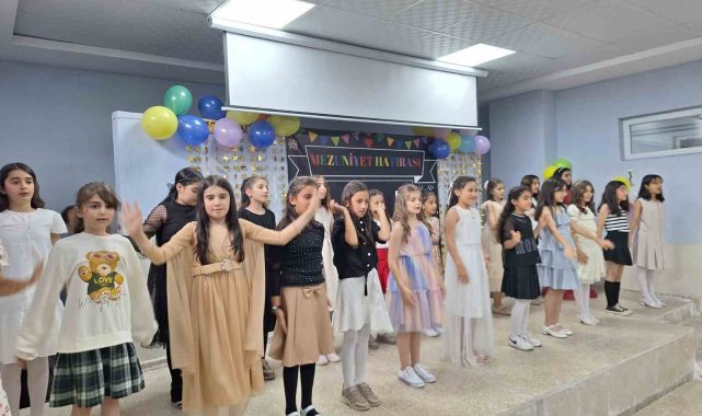 Muş Melikşah İlkokulu'nda düzenlenen mezuniyet töreninde minik öğrenciler diplomalarını alırken, veliler ve öğretmenler duygu dolu anlar yaşadı.