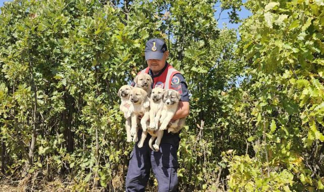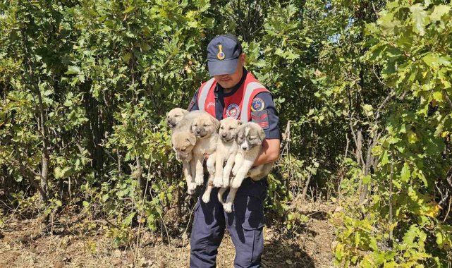 Muş'ta jandarma ekipleri tarafından ormanlık alana terk edilmiş halde bulunan 5 yavru köpek, bakım altına alındı.