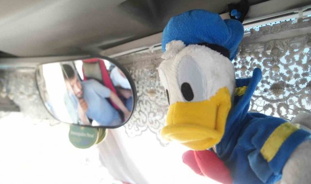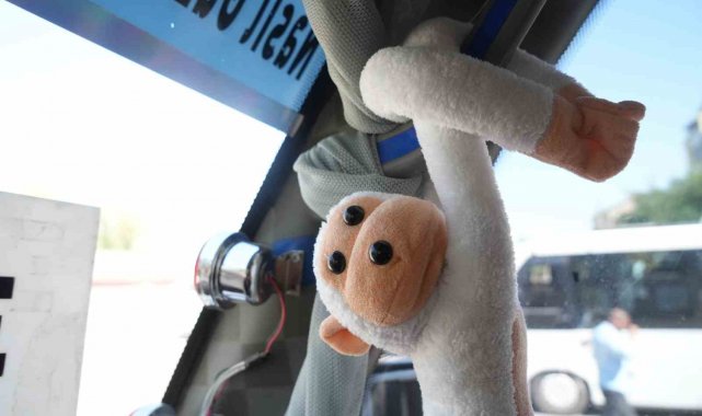 Şehir merkezinde hizmet veren otobüsün camlarına ve iç kısmına yerleştirilen peluş ayıcık, tavşan, ördek gibi oyuncaklar hem çocukların hem de yetişkinlerin dikkatini çekti.