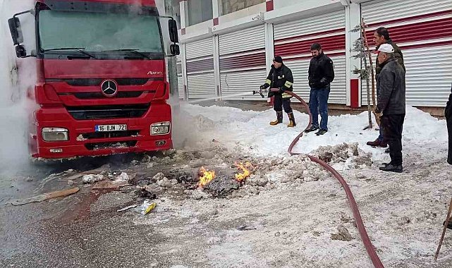 Muş'un 15 Temmuz Milli İrade Mahallesi'nde park halinde bulunan bir tırda çıkan yangın kısa süreli paniğe neden oldu. Edinilen bilgilere göre, 16 BJN 721 plakalı tırın motor kısmında sabah saatlerinde henüz belirlenemeyen bir nedenle yangın çıktı. Çevredeki vatandaşların durumu 112 Acil Çağrı Merkezi'ne bildirmesi üzerine olay yerine İtfaiye ekipleri sevk edildi. Kısa sürede bölgeye ulaşan ekipler, yangına müdahale ederek alevlerin tırın dorsesine sıçramasını önledi. İtfaiye ekiplerinin çalışmasıyla kontrol altına alınan yangın tamamen söndürülürken, olayda can kaybı ya da yaralanma yaşanmadı. Yangın nedeniyle tırda maddi hasar meydana gelirken, çıkış nedeni ile ilgili inceleme başlatıldı.