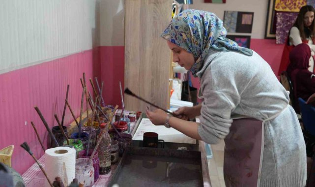 Halk Eğitim Merkezi Müdürlüğü bünyesinde yürütülen "Sanata Teşvik ve Sanatla Yaşam" programı kapsamında Aile ve Sosyal Hizmetler İl Müdürlüğü ile Halk Eğitim Merkezi Müdürlüğü iş birliğinde açılan kurs, katılımcılara hem sanatsal hem de ekonomik katkı sağlıyor. Ebru kursuna katılan şehit yakını ve gazi ailelerinden kadınlar, geleneksel Türk sanatlarından biri olan ebruyu öğreniyor. Kursiyerler, eğitim sürecinde hem el becerilerini geliştiriyor hem de ürettikleri eserlerle aile bütçelerine katkıda bulunma imkânı elde ediyor.