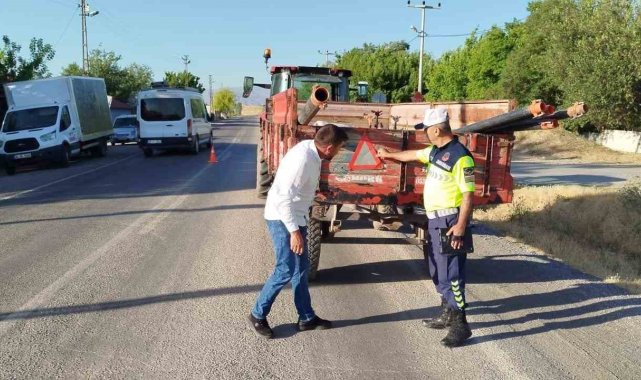 Ekipler, traktör römorklarının arka kısmına üçgen reflektör takılmasının hayati önem taşıdığına dikkat çekerken, tarım araçlarının karayollarında güvenli kullanımına ilişkin uyarılar yaptı. Denetimlerin hasat sezonu boyunca devam edeceği belirtildi.