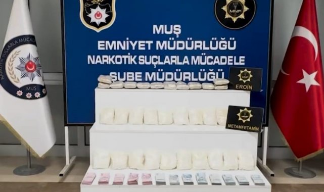 Muş Emniyet Müdürlüğü Narkotik Suçlarla Mücadele Şube ekipleri, Muş-Bingöl karayolundaki uygulama noktasında durdurulan iki araçta yaptıkları aramada batı illerine sevk edilmek üzere hazırlanmış 10 kilo 300 gram metamfetamin, 6 kilo 200 gram eroin ve 178 bin lira nakit para ele geçirdi. Operasyonda gözaltına alınan 5 şüpheliden 4'ü çıkarıldıkları mahkemece tutuklanarak cezaevine gönderilirken, 1 kişi savcılık tarafından serbest bırakıldı.