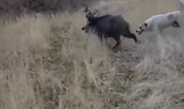 Muş'un Korkut ilçesine bağlı Karakale köyünde tarlaya inen yaban domuzu, çoban köpeklerinin saldırısına uğradı. O anlar cep telefonu kamerasıyla kaydedildi.