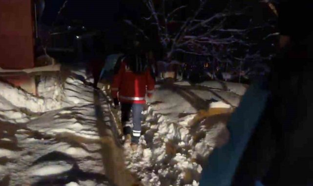 Muş'ta yolu kardan kapanan köydeki hasta zorlu mücadele ile hastaneye ulaştırıldı