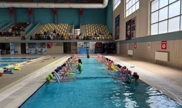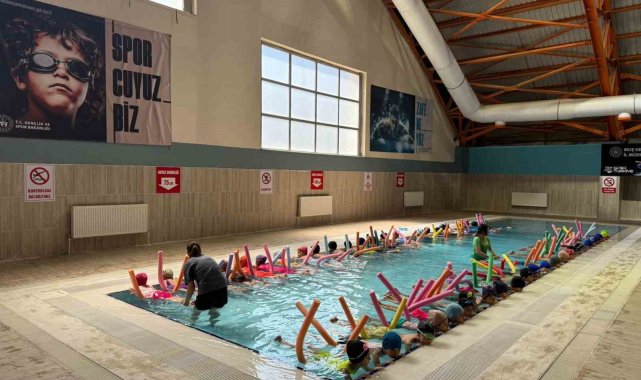 Gençlik ve Spor İl Müdürlüğü koordinesinde, yarı olimpik yüzme havuzunda gerçekleştirilen eğitimlerde çocuklar ve gençler, uzman antrenörler eşliğinde temel yüzme eğitimi alıyor. Yoğun katılımla sürdürülen çalışmalar sayesinde su sporlarına ilgi duyan gençlerin yetenekleri erken yaşta keşfediliyor.