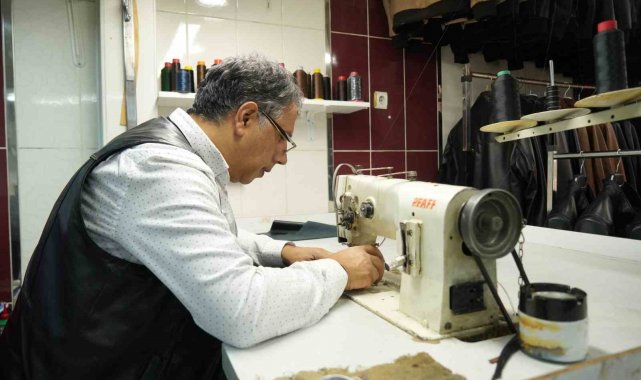 Muşlu Kenan Bilir isimli usta, deri mont imalatında ve tamirinde 38 yıllık tecrübesiyle mesleğini yaşatıyor.