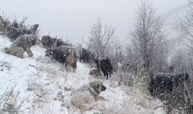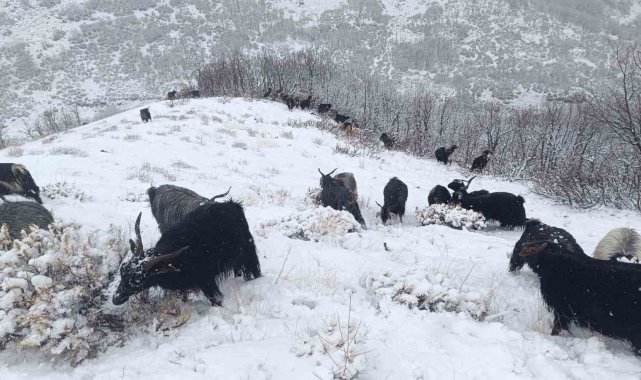 Muş'un Karabey köyüne bağlı Kamiş mezrasında hayvanlarını dağda otlatan çobanlar, aniden bastıran kar yağışı nedeniyle zor anlar yaşadı. Yüksek kesimlerde etkisini gösteren yağış dolayısıyla görüş mesafesi düşerken, çobanlar keçi sürülerini köye indirmek için uzun süre mücadele etti. Zorlu hava şartları nedeniyle sürüler yer yer ilerlemekte zorlandı.