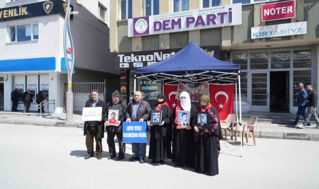 Muş'ta çocukları terör örgütü PKK tarafından kaçırılan aileler, DEM Parti İl Başkanlığı önündeki eylemlerine devam ediyor.