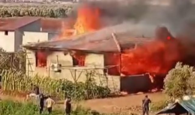 Hatay'da alevlere teslim olarak yanan müstakil ev kullanılmaz hale geldi.