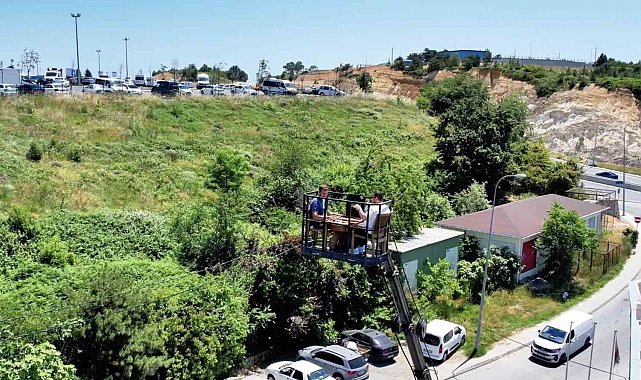 Arnavutköy Merkez Mahallesi'nde bulunan butik kafeye gelen 2 kişi, işletme sahibiyle şakalaşarak teras manzarası sordu. İşletme sahibinin şaka yapmak maksadıyla sorduğu 'Vinç çağırayım mı?' sorusuna 'Evet' yanıtı veren müşteriler için vinç çağrıldı. Vinçle 40 metre yüksekliğe çıkartılan 2 kişi, çay içerek tavla oynadı. O anlar dron kamerasıyla görüntülenirken, yapılan şakanın gerçek olması herkesi hayrete düşürdü. 40 metre yükseklikte orman manzarasında çay içerek tavla oynayan kişileri görenler de merakla izledi.