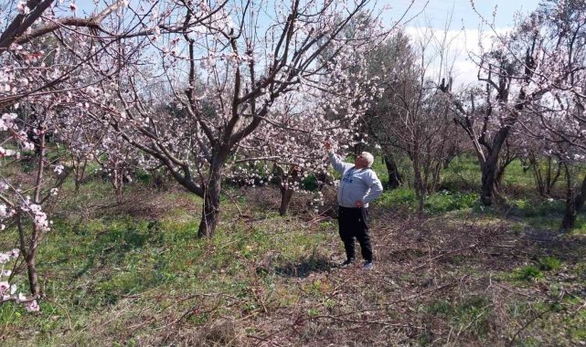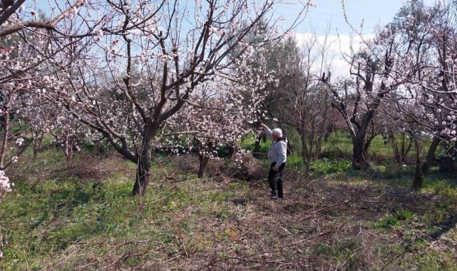Çiçek açan kayısı ağaçları çiftçinin yüzünü güldürdü. Ağaçlarda çiçeklerin bol olmasına sevinen bahçe sahibi İsmail Kaplan, "Hava şartlarından dolayı sıcak gitmesi iklimi değiştirdi, kayısılar erken çiçek açtı. Ama 3-4 gündür olan soğuklardan dolayı da korku içindeyiz. İnşallah bir şey olmaz. Bundan sonra ne olur Allah'ın bileceği bir şey. Görüyorsunuz bahçelerimiz bembeyaz. 5-6 dönüm civarında bahçem var. Bahçesi 20 dönüm, 30 dönüm, 100 dönüm olanlar var. Bahçenin sulaması var, çapası var, budaması var, çeşit çeşit gübre atıyorsun. Dağdaki zeytin gibi değil ki kayısı" dedi.