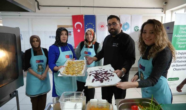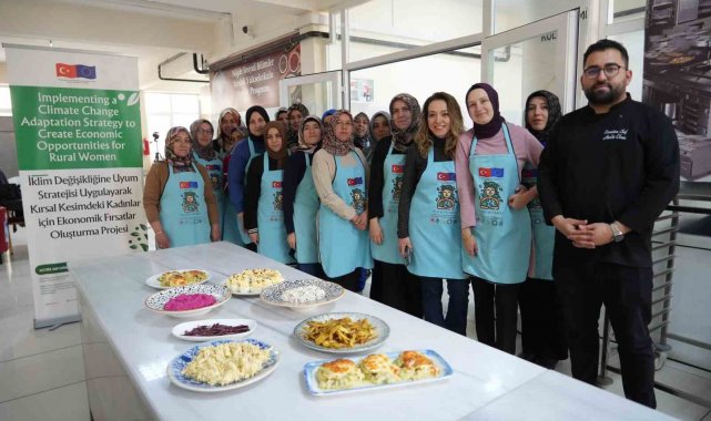 Niğde Ömer Halisdemir Üniversitesi öncülüğünde yürütülen ve Çevre, Şehircilik ve İklim Değişikliği Bakanlığı ile Avrupa Birliği tarafından desteklenen 'Kırsal Kesimdeki Kadınlar İçin Ekonomik Fırsatlar Oluşturma Amacıyla İklim Değişikliği Uyum Stratejisi Uygulama Projesi' çerçevesinde kadınlara yönelik eğitimler devam ediyor. Proje ile kadınlar; mutfaklarında daha bilinçli hareket ederek israfı önlemeyi aynı zamanda sıfır atık anlayışını gündelik yaşamlarında uygulamayı öğreniyor. Kasabalarda yaşayan kadınlara yönelik verilen eğitimde mutfakta sıfır atık bilinci kazanan kadınlar, mutfakta çöpe giden atıklardan sağlıklı yemekler yapmayı öğrenerek hem çevreyi koruyor hem de ekonomik tasarruf sağlıyor. Niğde Ömer Halisdemir Üniversitesi Aşçılık Bölümü Öğretim Görevlisi, Eğitmen Şef Mevlüt Ölmez tarafından verilen eğitimlerde, mutfak atıklarının değerlendirilmesi konusunda pratik bilgiler paylaşıldı. Kadınlar, çöpe giden sebze köklerinden çeşitli mezeler, sebze ve meyve kabuklarından atıştırmalıklar yapma konusunda bilgilendirildi.