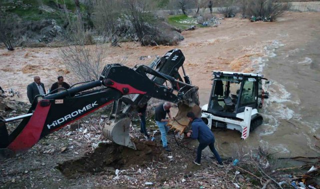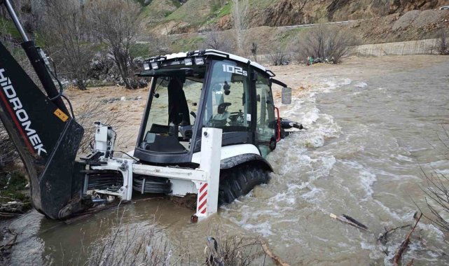 Mutki'de dereye kapılan kepçe kurtarıldı