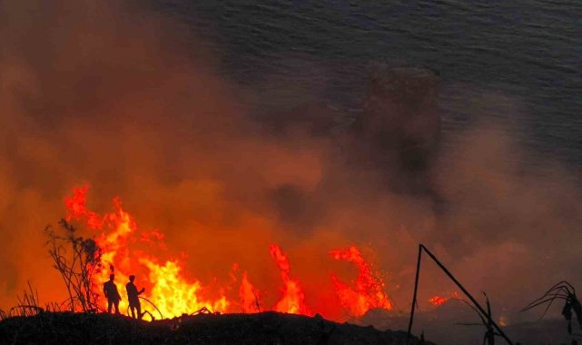 Muz bahçesinde çıkıp makilik alana sıçrayan yangın 5 saatte kontrol altına alındı