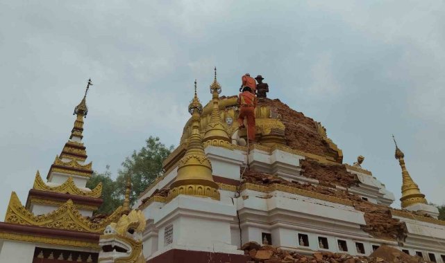 Deprem anına ilişkin yeni görüntüler ortaya çıktı. Güvenlik kamerasına yansıyan anlarda, Mandalay kentindeki Mahamuni Pagodası'nda (Budistlerin dini yapısı) bulunanların şiddetli sarsıntının başlamasıyla birlikte can havliyle kaçıştığı ve yıkım meydana geldiği görüldü.