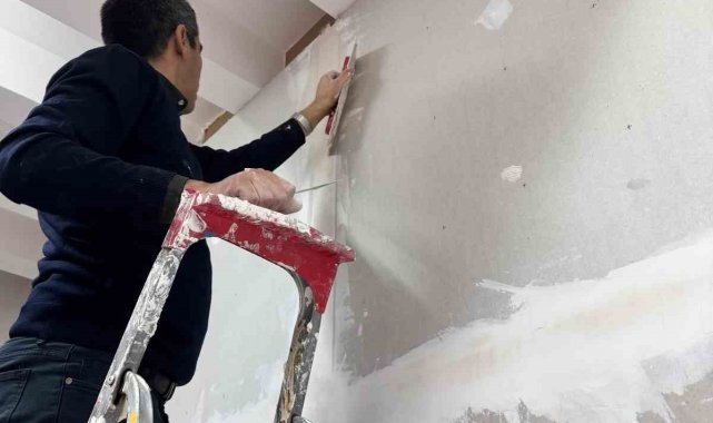 MYO müdürü okuldaki tadilat işlerini kendi elleriyle yapıyor