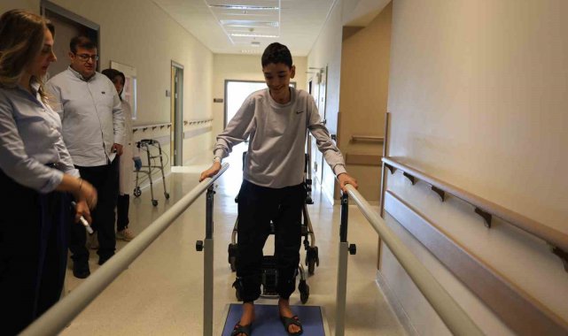 Bingöl'de 2 yıl önce otoimmün miyelit tanısıyla Elazığ Fethi Sekin Şehir Hastanesine sevk edilen 14 yaşındaki Aziz Enül, yapılan başarılı tedavilerin ardından 2 yılın sonunda destekli bir şekilde yürümeye başladı.