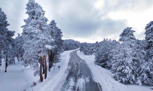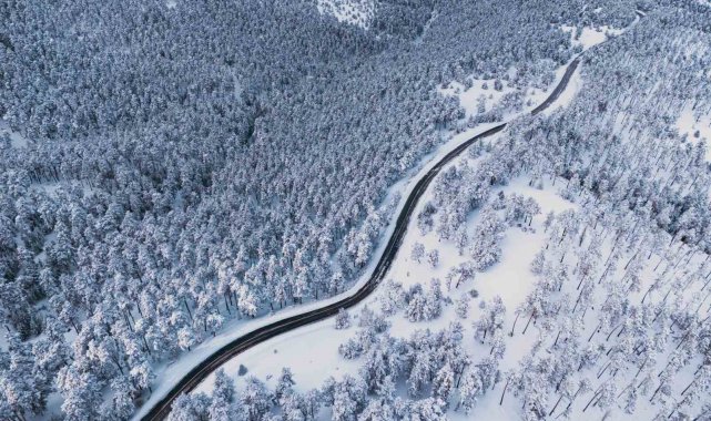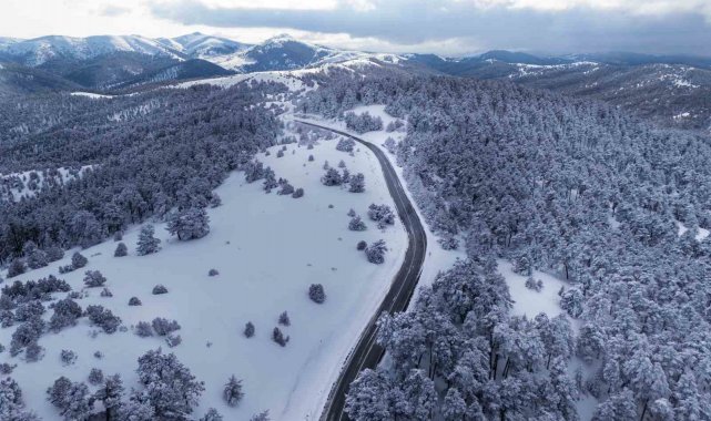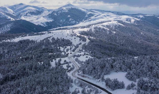 Yozgat'ın Akdağmadeni ilçesinde bulunan Nalbant Dağı, kar örtüsünün ardından göz kamaştıran güzelliğe büründü.
