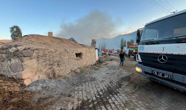 Erzurum'un Narman ilçesine bağlı Göllü Mahallesi'nde çıkan yangında 3 ev, bir garaj ve otlar kül oldu.