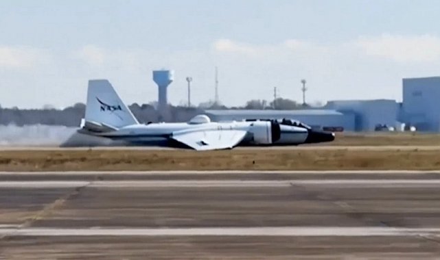ABD Ulusal Havacılık ve Uzay Dairesi'ne (NASA) ait araştırma uçağı, mekanik arıza nedeniyle iniş takımlarının açılmaması sonucu gövde üzerine iniş yaptı.