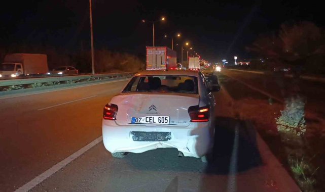 Antalya'nın Manavgat ilçesinde emniyet şeridinde duran otomobile motosikletin arkadan çarpması sonucu meydana gelen kazada motosiklet sürücüsü yaralandı. Motosikletin çarptığı otomobil sürücüsünün navigasyona bakmak için emniyet şeridinde durduğu sırada kazanın meydana geldiğini söylediği öğrenildi.