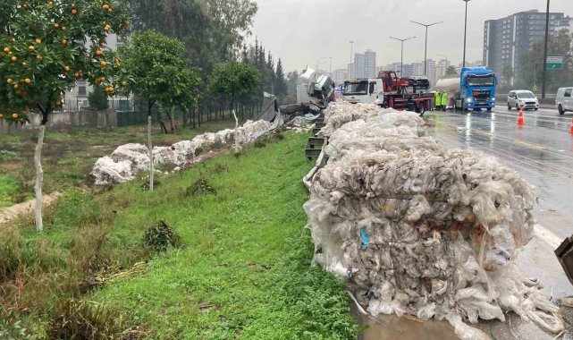 Adana'da naylon atık yüklü tırın kontrolden çıkması sonucu otoyolda tehlike dolu anlar yaşandı. Bariyerlere çarparak durabilen tırın kasasındaki atıklar yola savruldu, otoyol adeta çöplüğe döndü.