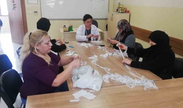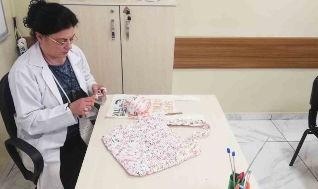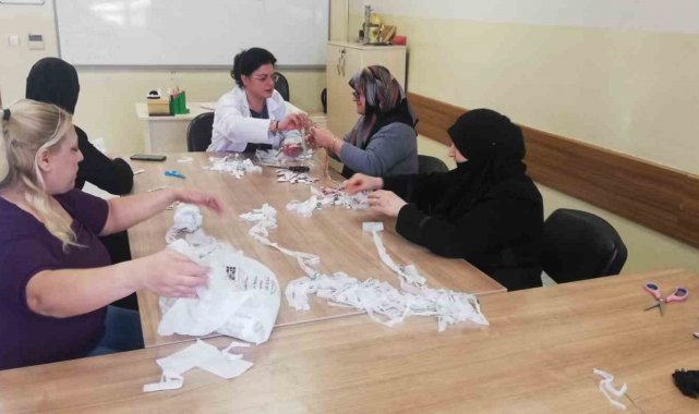 Hasan Celal Güzel Gençlik Merkezi kurs eğitmeni Esra Nazlı Aygan, sıfır atık üzerine yapılan çalışmaları benimsediğini belirterek, "Özellikle sıfır atık yaklaşımını benimsiyor, atılacak malzemeleri değerlendirmeyi tercih ediyorum. Öğrencilerime de her zaman şunu söylüyorum; Bir şeyi atmadan önce düşünün, değerlendirin. Çünkü doğada yok olmayan bir şey evde de yok olmaz. Ne yazık ki bu tür malzemeler yok olmuyor ama değersizmiş gibi görülüyor. Oysa doğru ellerde çok kıymetli hale gelebilirler. Mesela poşetleri ele alalım. Ben poşet atıklarından ip yapıyorum ve bu iplerle çanta örüyorum. Şu anda çanta sayısını belirledim, üretime başladım. Öğrencilerim de bu çalışmaya katılacaklar. Aynı teknikle çanta dışında zevke ya da ihtiyaca göre sepet, ekmeklik, hatta kirli çamaşır sepeti bile yapılabilir. Amacımız, doğada yüzyıllarca yok olmayan bir poşeti, doğaya zarar vermeden önce evde değerlendirerek bir işe yaramasını sağlamak. Bu şekilde hem çevreye hem geleceğimize katkı sağlıyoruz. Kendim de kanser hastalığı geçirdim. Bu süreçte doğayla ve sağlığımızla ne kadar iç içe yaşadığımızı daha iyi anladım. Denizlere atılan bir poşet, balıkları zehirleyebiliyor, o balığı yiyen insan da hastalanabiliyor. Bu bilinçle ben, doğayı ve dolayısıyla gelecekte çocuklarımızı korumak için poşetleri atmak yerine değerlendiriyorum. Topladığım poşetleri önce temizliyor, ardından elimle düzgünce katlıyor, ütüler gibi düzeltiyorum. Kendime ait bir ölçüm var; o ölçüyle kesip zincir çeker gibi ip haline getiriyorum. Bu iplerle istediğimiz her şeyi örebiliyoruz. Özellikle plajda hasır olarak kullanmak da çok hoşuma gidiyor. Bir saat içinde rahatlıkla on poşeti ipe dönüştürebiliyorum. Bu miktar da bir çanta örmek için yeterli oluyor. Hem geri dönüşüm yapıyoruz hem de el emeğiyle ortaya güzel işler çıkarıyoruz" şeklinde konuştu.