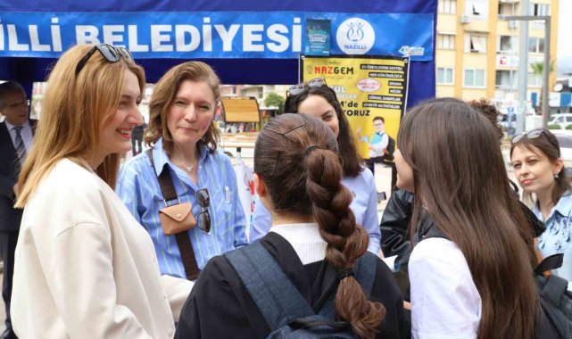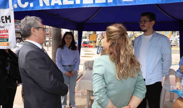 Nazilli Belediye Başkanı Dr. Ertuğrul Tetik, Gençlik Eğitim Danışma ve Sosyal Etkinlik Merkezi (NAZGEM)'nin Cumhuriyet Meydanı'ndaki standını ziyaret etti.