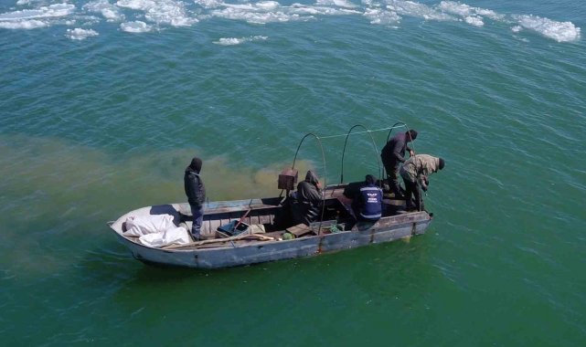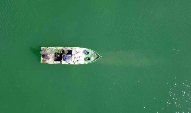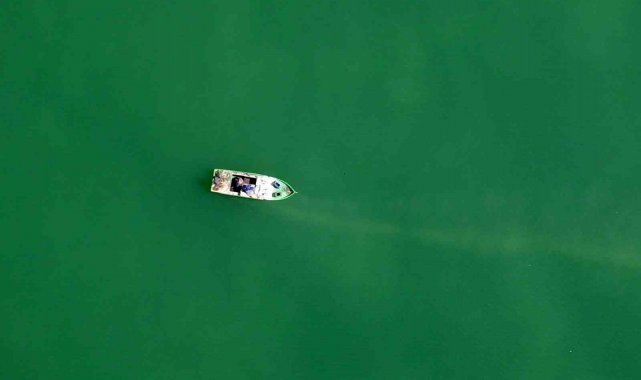 Nazik Gölü'nde balıkçı tekneleri havadan görüntülendi