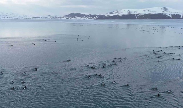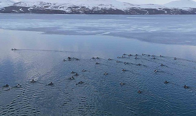 Bölge sakinleri, bu yıl kışın sert geçtiğini ancak havaların erken ısınmasıyla birlikte göldeki buz tabakasının hızla çözüldüğünü belirtti. Nazik Gölü'nde yaşanan bu doğa şöleni, baharın müjdecisi olarak yorumlanırken, doğal güzelliği ve zengin kuş çeşitliliğiyle bilinen göl, her mevsim ayrı bir güzellik sunuyor.