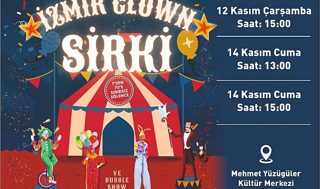 Clown performansları, jonglör, tahta bacak, illüzyon ve bubble show gibi birçok eğlenceli gösterinin yer alacağı sirk, 12 Kasım Çarşamba günü saat 13.00 ve 15.00'te, 14 Kasım Cuma günü yine saat 13.00 ve 15.00'te Mehmet Yüzügüler Kültür Merkezi'nde çocuklarla buluşacak.
