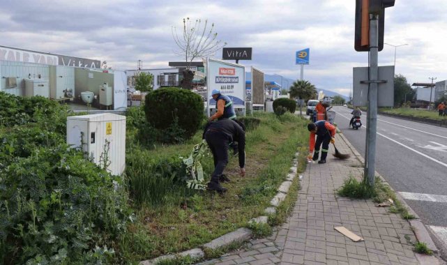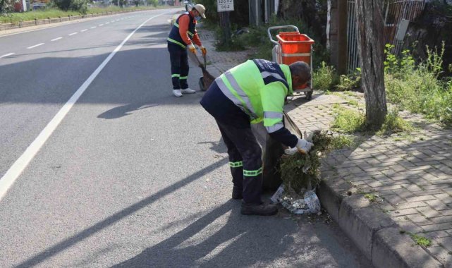 Çalışmalar kapsamında; yol kenarlarında biriken çöpler toplanırken, kaldırımlar ve duraklar da titizlikle temizlendi.