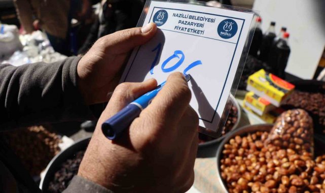 Nazilli Belediyesi Zabıta Müdürlüğü ekipleri, ilçenin en büyük pazarlarından biri olan Perşembe Pazarı'nda esnafın daha düzenli ve şeffaf satış yapmasını sağlamak amacıyla fiyat etiketi dağıttı.