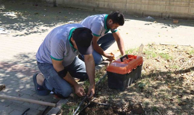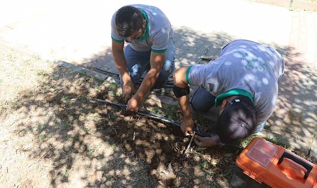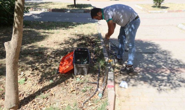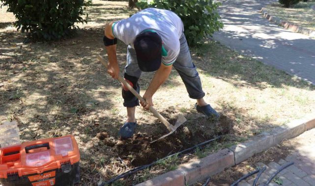 Nazilli Belediyesi su israfına karşı parklardaki damlama sistemlerini yeniliyor