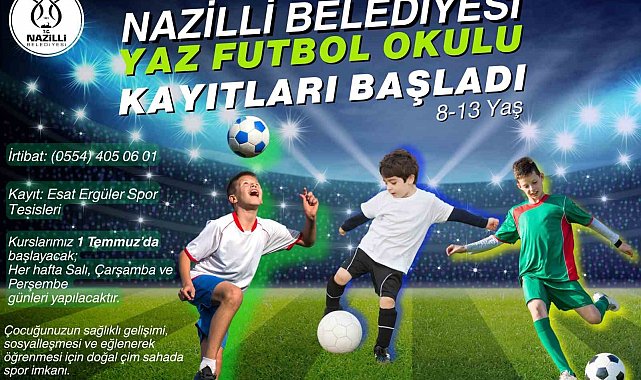 Çocukların sağlıklı gelişimi, sosyalleşmesi ve eğlenerek öğrenmesi için doğal çim sahada spor imkanı sunan Nazilli Belediyesi Yaz Futbol Okulu için kayıtlar başladı.