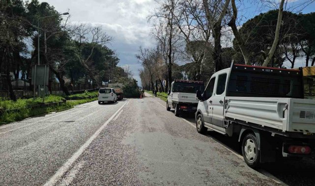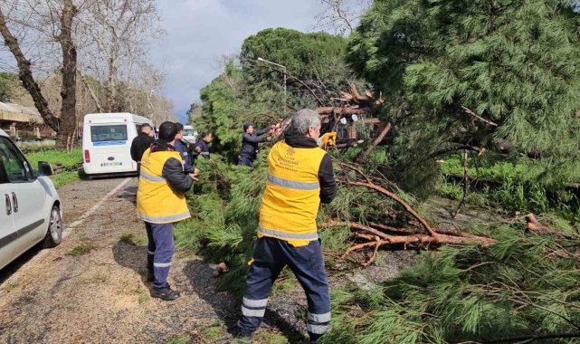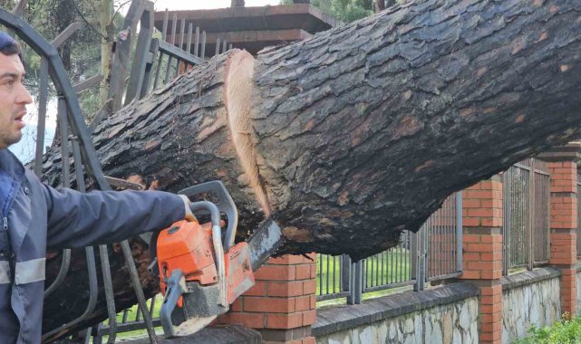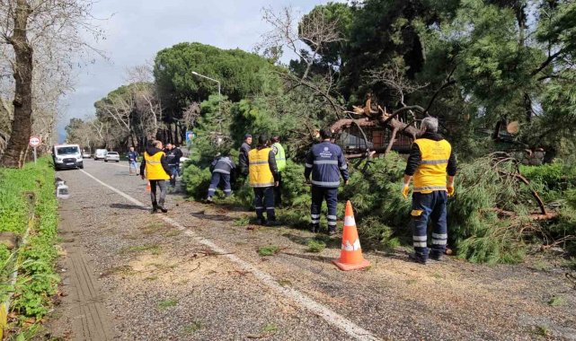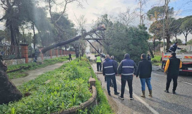 Aydın'ın Nazilli ilçesinde Bozdoğan-Nazilli karayoluna devrilen büyük bir çam ağacı yolu kapattı. Devrilen ağacı ekipler kısa sürede parçalara ayırarak yolu trafiğe açtı.
