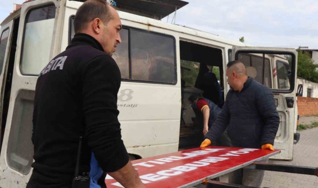 Nazilli'de izinsiz asılan tabela ve dubalar söküldü