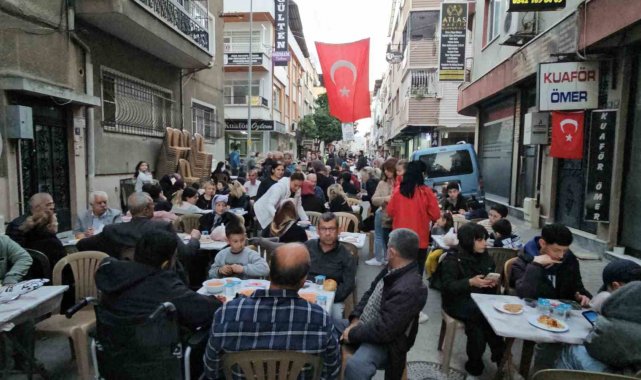 Aydın'ın Nazilli ilçesinde ilçenin en renkli sokakları arasında yer alan Kuaförler Sokağı'nda iftar sofrası bir kez daha kuruldu.