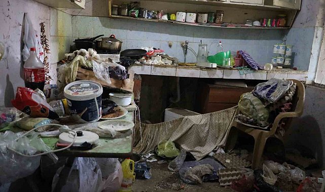 Nazilli'deki çöp evden 3 kamyon dolusu çöp çıktı