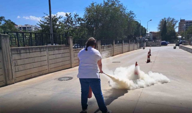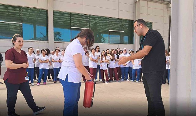 Nazilli Devlet Hastanesi'nde staj yapan öğrenciler, mesleki eğitimleri kapsamında afet ve acil durumlara yönelik uygulamalı eğitim aldı. Hastanenin Sivil Savunma Amiri Aytunç Çumralı tarafından verilen eğitimde, öğrenciler hem teorik bilgiler edindi hem de uygulama yapma fırsatı buldu. Eğitim programında yangın eğitimi, kırmızı kod uygulamaları, temel afet bilinci, acil durum plan krokileri ve yangın söndürücülerin kullanımı konularında bilgilendirme yapıldı. Öğrenciler, yangın söndürme tatbikatı gibi uygulamalarla afet ve acil durumlarda hızlı, doğru ve etkili müdahale yöntemlerini deneyimleme imkanı buldu. Nazilli Devlet Hastanesi, bu tür eğitimlerin hem öğrencilerin mesleki gelişimine katkı sağladığını hem de muhtemel afet ve acil durumlarda toplumun güvenliği açısından büyük önem taşıdığını vurgularken yaptığı açıklamada "Stajyer öğrencilerimiz, teorik bilgilerin yanı sıra uygulamalı eğitimlerle afet ve acil durumlarda doğru ve etkili müdahale yöntemlerini öğrenme fırsatı buldu" ifadeleri yer aldı.