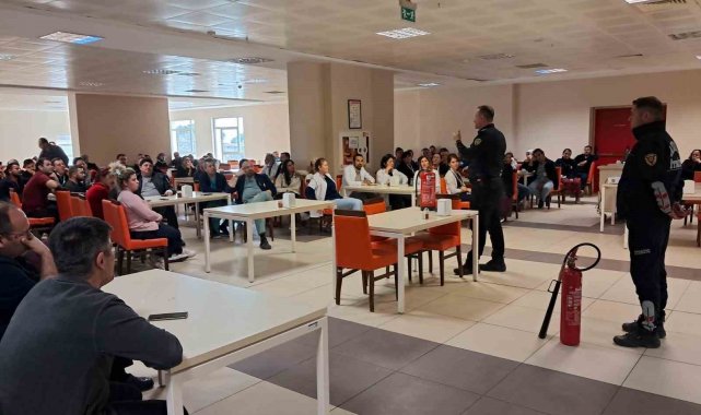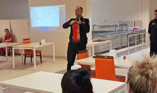 Nazilli Devlet Hastanesi'nde, yangın durumlarına karşı hazırlıklı olmak amacıyla 'Yangın, Yangında Tahliye, Afet Durumu ve İtfaiyecilik Mesleği, Uygulamalı Yangın Söndürücü Kullanımı' konularında eğitim verildi.