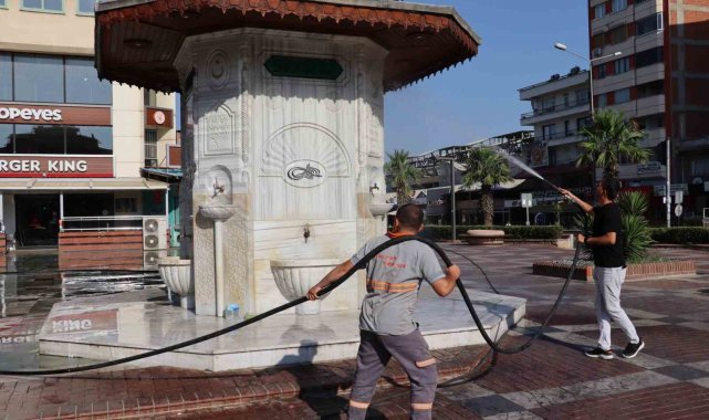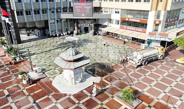 Sabah erken saatlerde çalışmalara başlayan ekipler, meydanda yer alan Osmanlı Çeşmesi'ni özel ilaçlarla temizleyerek eski kötü görüntüsünü yok etti. Uzun yıllardır kullanımı nedeniyle meydanda kalıcı hale gelen kirler ise temizlik spatulası ile tek tek kazındı. Deterjanla fırçalanan meydan ardından tazyikli su ile durulandı. Temizlik İşleri ekipleri tarafından eş zamanlı olarak Ahmet Şensan Kültür Merkezi doğusunda yer alan Belediye Nikah Salonu çevresinde de yabani ot temizliği, budama ve temizlik çalışması yapıldı.