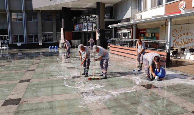 Nazilli'nin kalbi niteliğindeki meydanın genel görünümünün iyileştirilmesi ve hijyen standartlarının artırılması için söz konusu çalışmaların rutin olarak sürdürüleceğini kaydeden Nazilli Belediye Başkanı Dr. Ertuğrul Tetik, sıcak hava şartlarına rağmen gece gündüz demeden özveriyle çalışan tüm saha ekibineteşekküretti.
