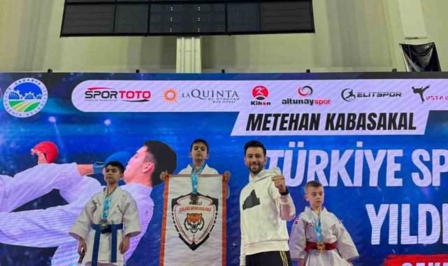 Nazilli Zafer İlkokulu 3. sınıf öğrencisi Eralp Umut Çuval Sakarya'da düzenlenen Türkiye Karate Yıldızlar Ligi müsabakalarında kendi kategorisinde gösterdiği üstün performansla Türkiye birincisi oldu. Rakiplerini geride bırakarak altın madalyaya uzanan minik sporcu, büyük bir başarıya imza attı. Aydın İl Milli Eğitim Müdürlüğü tarafından yapılan paylaşımda, Türkiye şampiyonu olarak Aydın'ın gururu olan Eralp Umut Çuval, ailesi ve emeği geçen öğretmenler tebrik edilirken öğrencinin başarılarının artarak devam etmesi temenni edildi.